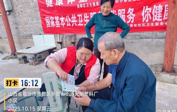 10月15日,乡贤街办事处社区卫生服务中心走进塑料厂小区,开展了一场贴近民心的高血压防治宣传活动,把专业的健康服务和科普知识送到居民“家门口”。活动现场,中心医护人员带着专业设备,耐心为每一位前来的居民免费测量血压。从调整袖带松紧到读取数值,每一个步骤都细致严谨。